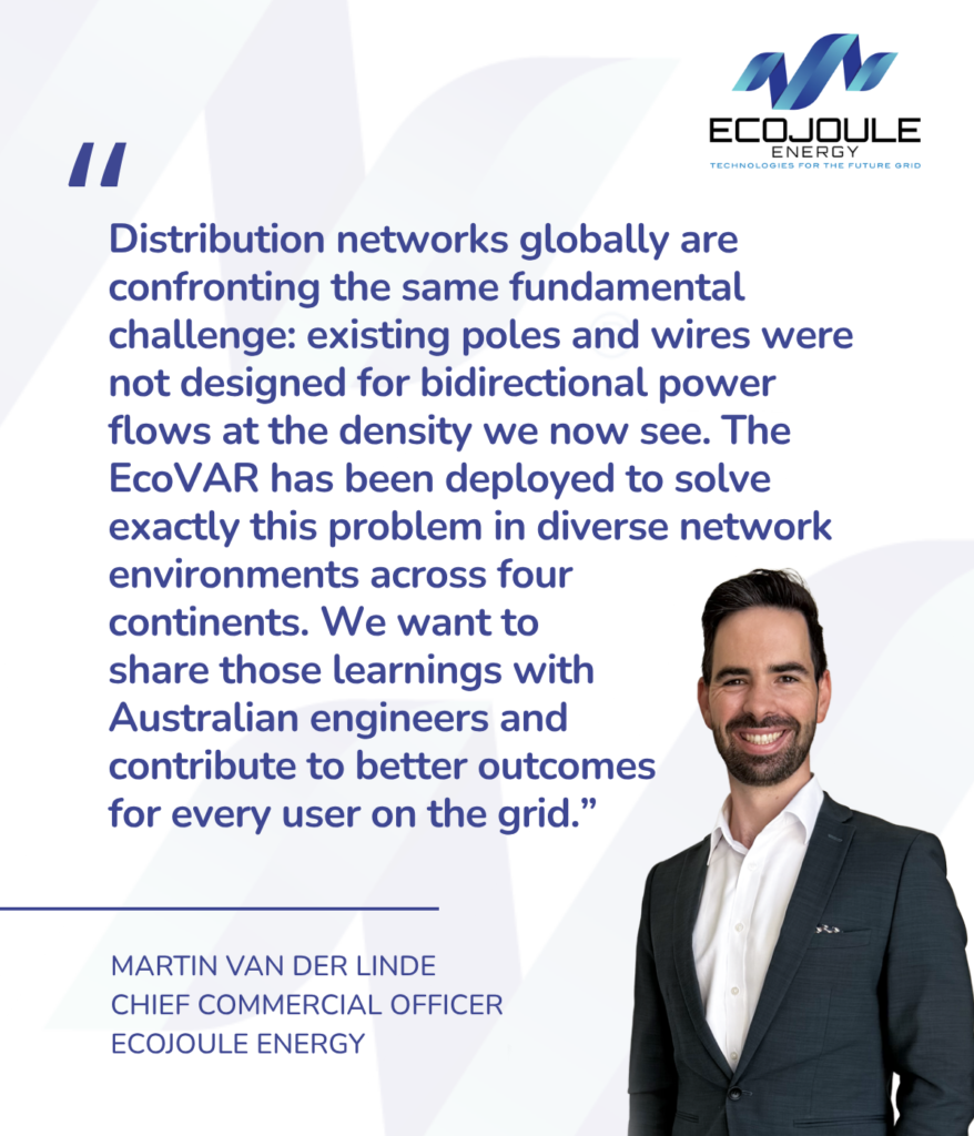 Global operator of Distribution STATCOMs across four continents brings field-proven grid management expertise to the Australian engineering community. EcoJoule Energy today announced it has joined the Electric Energy Society of Australia (EESA) as a Bronze Sponsor. The membership reflects EcoJoule’s commitment to contributing global operational experience in low voltage distribution…